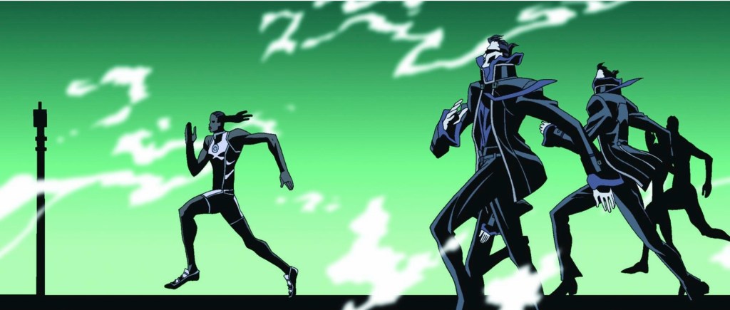 In the race, he starts off well but his leg muscles begins to tear as he’s running. Determined, he pushes through and continues the race. As he’s in the lead, he again deals with issues with his legs. However, he continues running. He runs to the point where he gets out of the Matrix. He wakes up in his pod and then he ends up back in his mind, running the race. Right before he crosses the finish line, the agents attempt to stop him from breaking the record. He wins the race breaking the world record but is clearly injured once he clears the finish line.